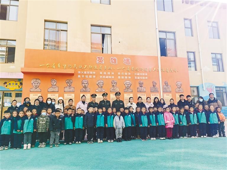 西藏軍區某部為拉薩市城關區第四幼兒園援建英雄墻