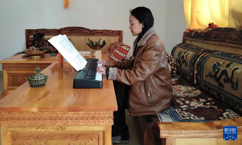 走進(jìn)西藏林芝市察隅縣上察隅鎮(zhèn)永寧村一戶(hù)村民家里,藏式茶幾上的電子琴引人矚目,一旁展開(kāi)的五線譜本上寫(xiě)滿了筆記。