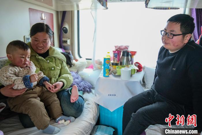 2月1日,張彩霞一家在拉薩開往上海的Z166次列車上。 中新社記者 江飛波 攝