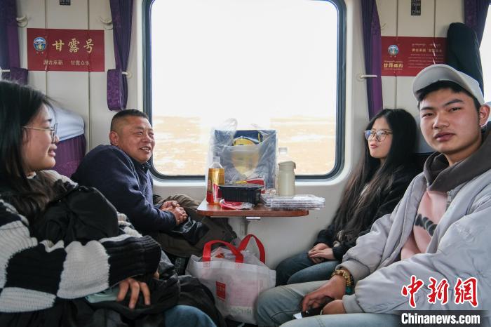 2月1日,Z166次列車硬座車廂,幾位首次到西藏旅行的大學生體驗青藏鐵路。中新社記者 江飛波 攝