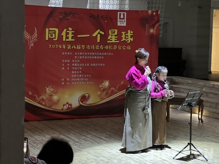 中國西藏網訊 2月24日元宵節之夜,以“同住一個星球”為主題的“2024年第八屆華語詩歌春晚拉薩分會場詩歌朗誦會”在拉薩介觀藝術中心舉行。此次活動由西藏作家協會主辦、雪域萱歌、格桑花開、拉薩介觀藝術中心協辦。