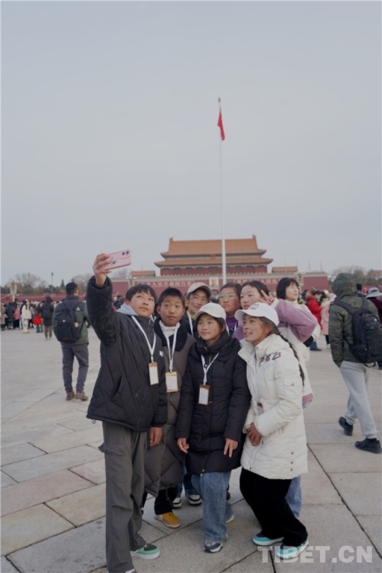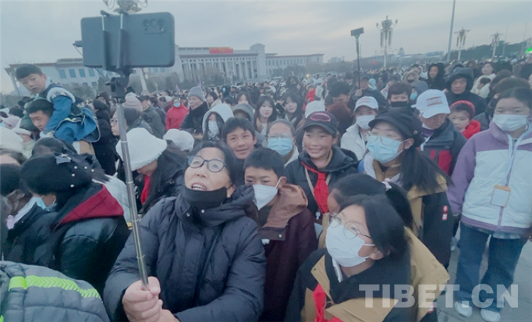 中國西藏網訊 “我們來自西藏,我在天安門廣場看升旗,特別激動,特別開心,特別感動!”來自西藏自治區日喀則市邊境縣學生赴北京參觀研學的22名學生激動地擠進老師的手機鏡頭高聲喊著。