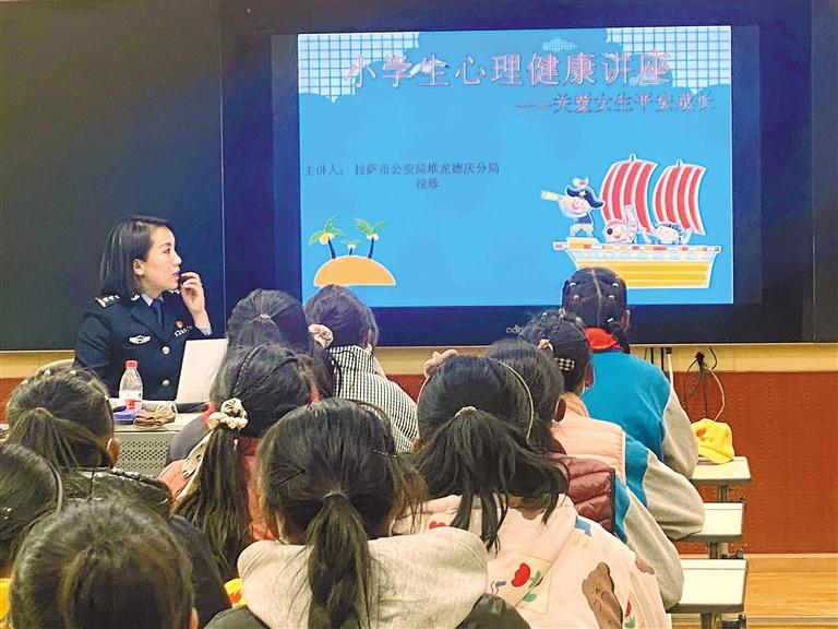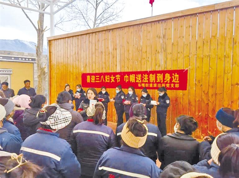 東嘎街道派出所全體民警不斷提高婦女兒童維權業務水平,引導廣大婦女兒童從思想上樹立維權意識,開展普法宣傳75次、心理健康講座進校園52場,創建“零家庭暴力小區”5家、關愛困難婦女兒童家庭17戶、開展心理疏導150余人次。多次派出“巾幗宣講團”前往轄區各學校、小區、社區等單位,組織開展未成年人保護法及反家庭暴力等法律法規及心理健康知識講座;借助“三八”婦女節、“憲法日”“國家安全日”等節點,開展婦女兒童權益保護主題宣講。“巾幗宣講團”受拉薩市婦女聯合會及堆龍德慶區婦女聯合會邀請,多次前往拉薩市各縣區開展“婦女兒童維權”法律宣講,深入群眾家中,用實際行動向社會大眾普及法律法規知識,尤其是維護婦女兒童權益的相關法律知識,讓轄區群眾感受到法律的溫度。