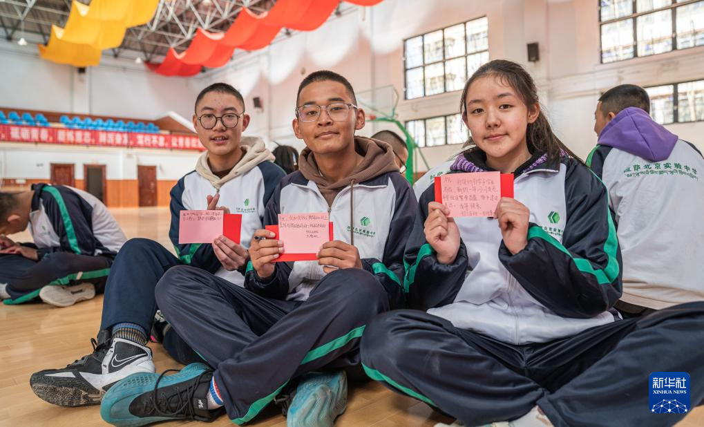 3月1日,拉薩北京實驗中學的學生展示寫好的新學期愿望。新華社記者 丁增尼達 攝