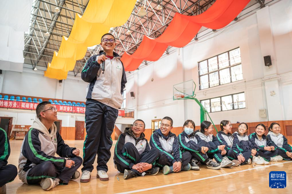 3月1日,拉薩北京實驗中學的學生與老師交流新學期愿望。新華社記者 丁增尼達 攝