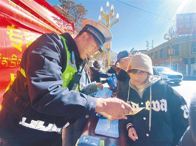 圖為工作人員向過往群眾發放宣傳手冊并講解網絡安全知識。記者 丹增平措 攝