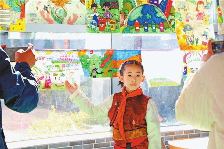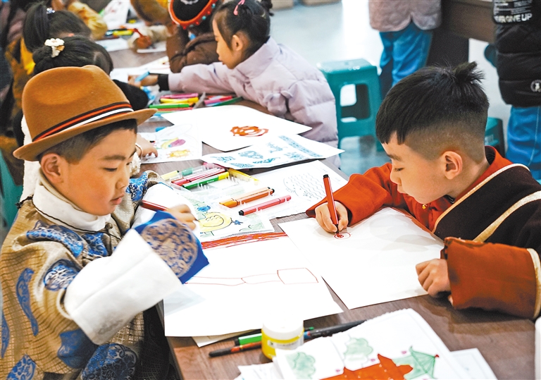 圖為孩子們在展館內繪畫。記者 袁海霞 鄭璐 通訊員 普珍 攝