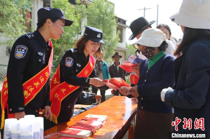 圖為西藏邊檢總站執法調查支隊民警向民眾普及《民法典》知識。徐錫萬 攝