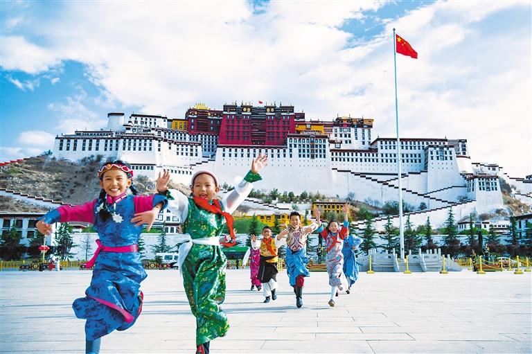 圖為6月1日,小朋友們在拉薩布達拉宮廣場玩耍。新華社發(旦增努布 攝)