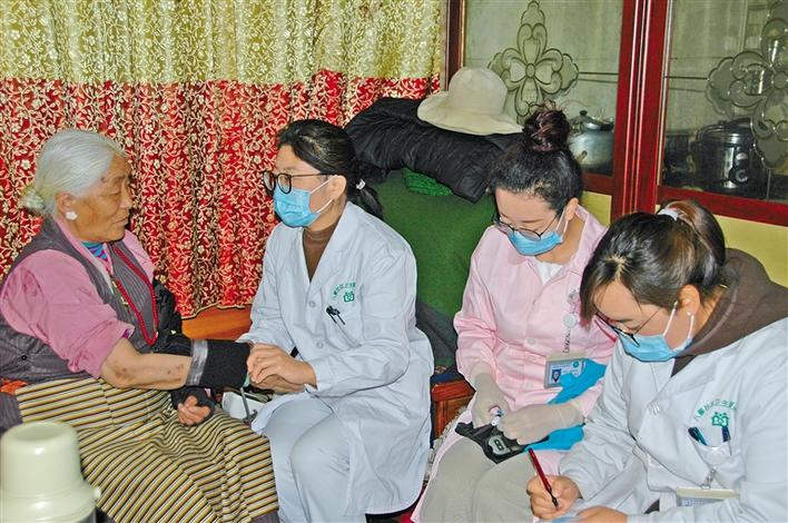 圖為家庭簽約醫生到拉薩繞賽居委會五保戶益西曲珍家中上門服務。記者 曉勇 攝