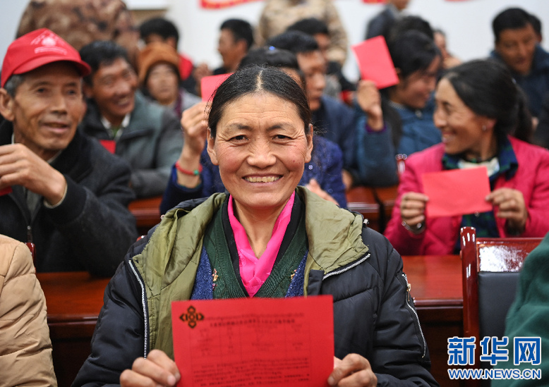西藏首個邊境基層供銷合作社山南市隆子縣玉麥鄉基層供銷合作社召開社員代表大會,選舉產生理事會、監事會,表決通過基層社章程。這是村民次仁卓瑪在投票(7月29日攝)。新華社記者 普布扎西 攝