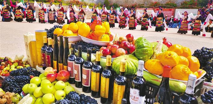 圖為近日西藏自治區昌都市芒康縣干部群眾歡聚一堂,載歌載舞,慶祝葡萄豐收。記者 桑鄧旺姆 陳志強 攝