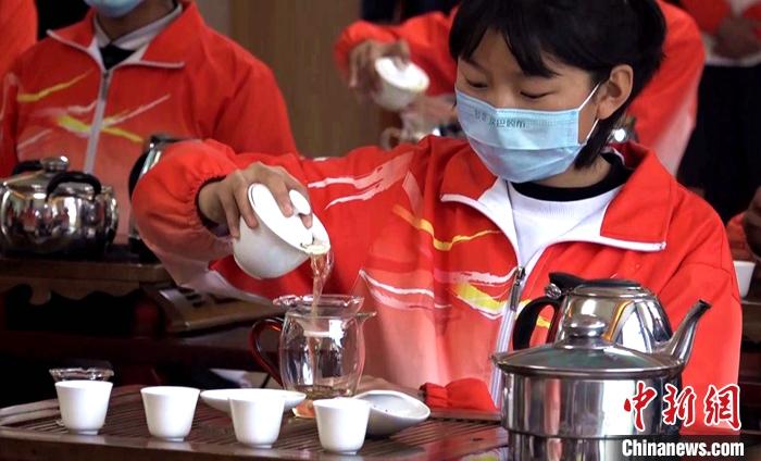 圖為11月19日,西藏林芝市職業技術學校學生學習茶藝。中新社記者 貢桑拉姆 攝