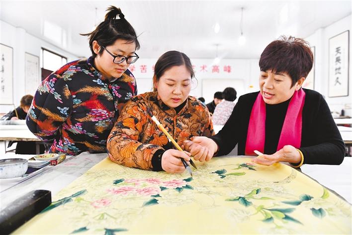 山東省菏澤市巨野縣依托“菏澤牡丹”的資源優勢,近年來著力打造工筆牡丹畫文化產業,鞏固脫貧攻堅成果,有序推進鄉村振興。目前,巨野縣有50個繪畫專業村,從業人員達1.5萬人。巨幅工筆牡丹畫作品先后亮相上合組織青島峰會、中國國際進口博覽會等重大活動。