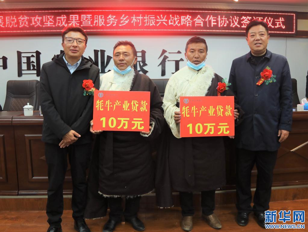 近日,拉薩市當雄縣人民政府與中國農業銀行拉薩分行、西藏財信融資擔保有限公司簽訂鞏固拓展脫貧攻堅成果暨服務鄉村振興戰略合作協議,并發放5筆精準扶貧小額到戶貸款,13筆“惠農e貸”,2筆“牦牛產業貸款”。
