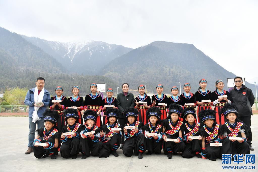 3月30日,米林縣中學(xué)學(xué)生在“U+校餐計劃”捐贈儀式上表演節(jié)目。新華社記者 孫瑞博 攝