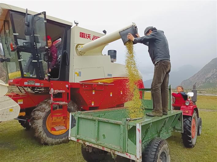 圖為邊壩縣群眾使用機器收割青稞。昌都市農業農村局提供