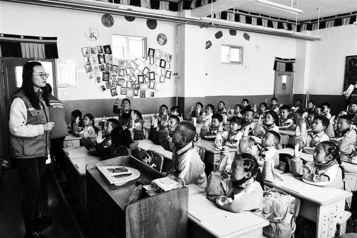 國網(wǎng)拉薩供電公司共產(chǎn)黨員服務(wù)隊入校園進行電力知識宣講。國網(wǎng)拉薩供電公司供圖
