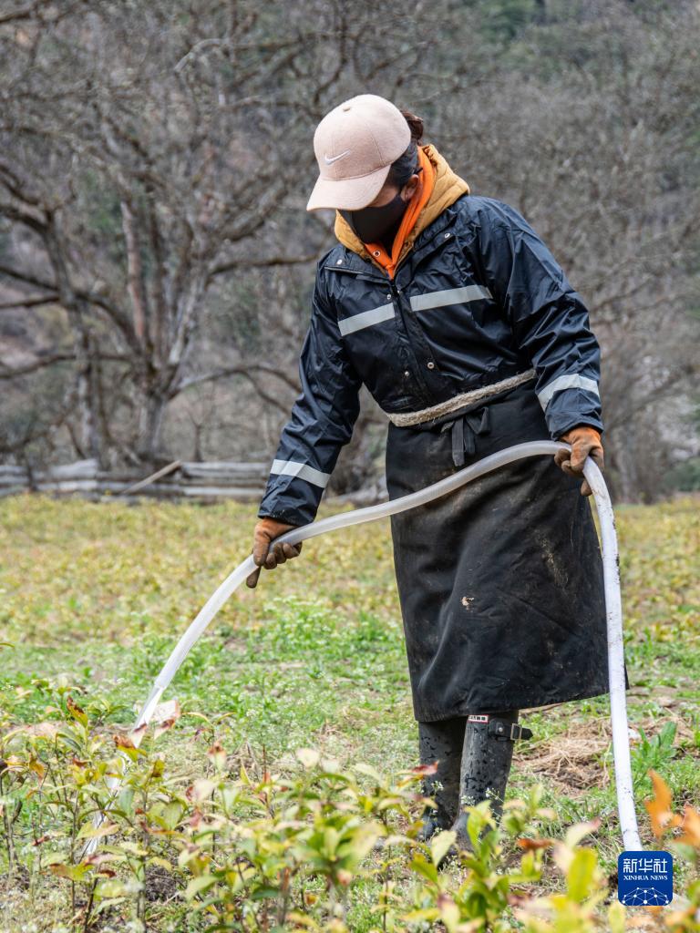 在西藏林芝市波密縣藏芝星農業科技有限公司茶園里,茶田管護員正忙著給茶樹澆水除草,門口的項目牌上展示著茶樹品種、生長周期和管護注意事項?!安鑸@讓我們增加了新的收入。”看著現代化的連片茶田,在此工作的古鄉雪瓦卡村32歲的村民索朗措姆由衷感慨。