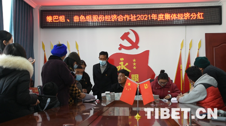 中國西藏網(wǎng)訊 在藏歷新年來臨之際,2月23日,西藏自治區(qū)拉薩市城關區(qū)奪底街道維巴村維巴組、曲色組股份經(jīng)濟合作社2021年度集體經(jīng)濟分紅,399戶共發(fā)放530650元分紅資金。