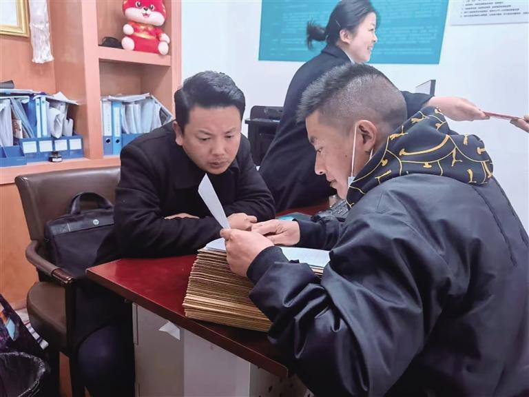 人行拉薩中支工作人員給市民講解貸款業務流程。