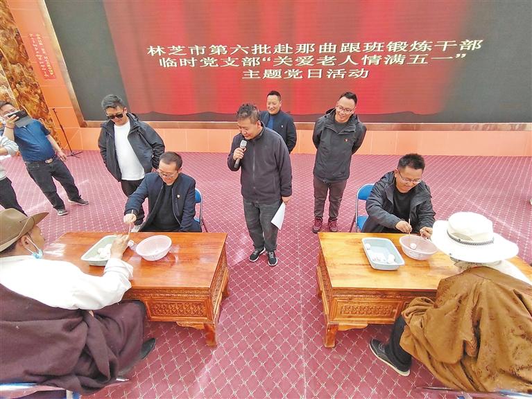 近日,林芝赴那曲跟班鍛煉小組臨時黨支部組織黨員干部前往色尼區特困人員集中供養中心開展關愛老人主題黨日活動。活動中,黨員干部為老人們發放慰問品、表演文藝節目,同老人們拉家常,幫老人們打掃衛生。此次活動既是一次志愿活動,也是一次黨性鍛煉,充分展現了黨員干部踐行為民服務、奮發有為的時代風采,增進了干群關系。