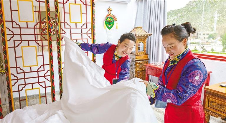 圖為搬遷入住堆龍德慶區德慶鎮的群眾在乃瓊街道波瑪村德吉藏家民宿就業。圖片由拉薩市鄉村振興局提供