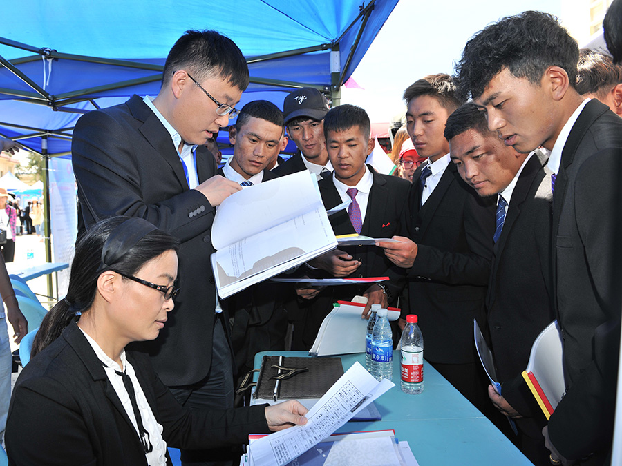國網西藏電力有限公司人資部組織參加2018年中央企業區內國有企業面向西藏高校畢業生和貧困家庭勞動力專場招聘會(2018年9月6日攝)。國網西藏電力供圖