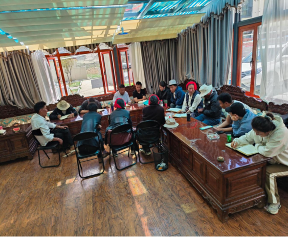 圖為駐村工作隊聽取村江多村獸藥物資需求會議現場。新華網發 舒啟航 攝