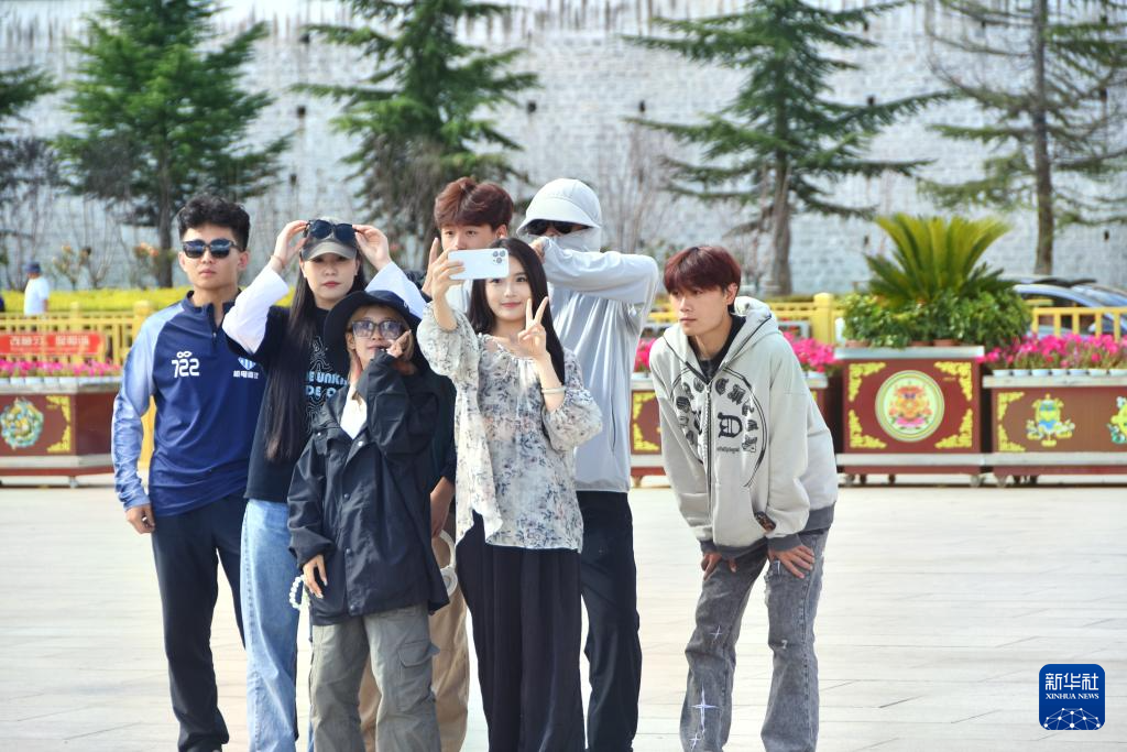 8月17日,布達拉宮廣場,游客們拍照留念。新華社記者 劉文博 攝