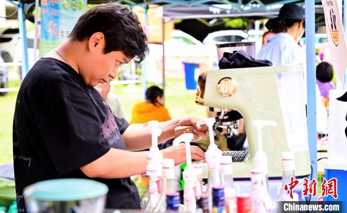 圖為咖啡走進鄉間,咖啡師調制咖啡。西藏他喜咨詢供圖
