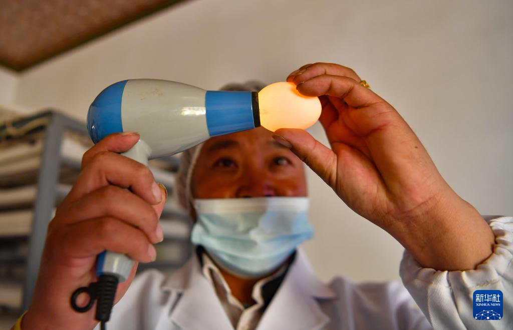 9月24日,合作社工作人員在檢查雞蛋質量。新華社記者 晉美多吉 攝