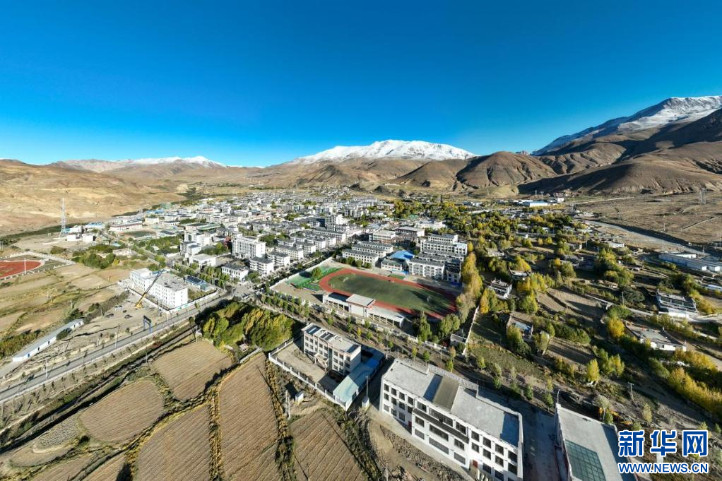 西藏山南市措美縣縣城全景圖(無人機照片)。新華網 旦增努布 攝