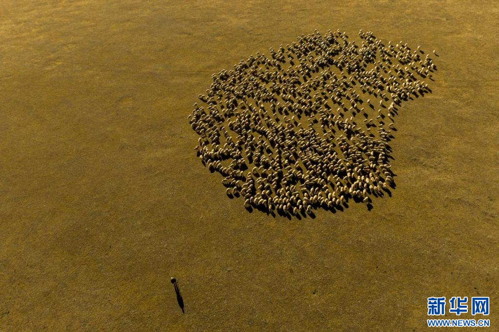 扎西松多村集體養殖的千只綿羊(無人機照片)。新華網 旦增努布 攝