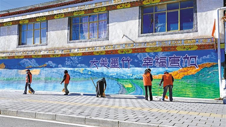 達(dá)孜區(qū)干部職工在清潔衛(wèi)生。拉薩記者站 攝