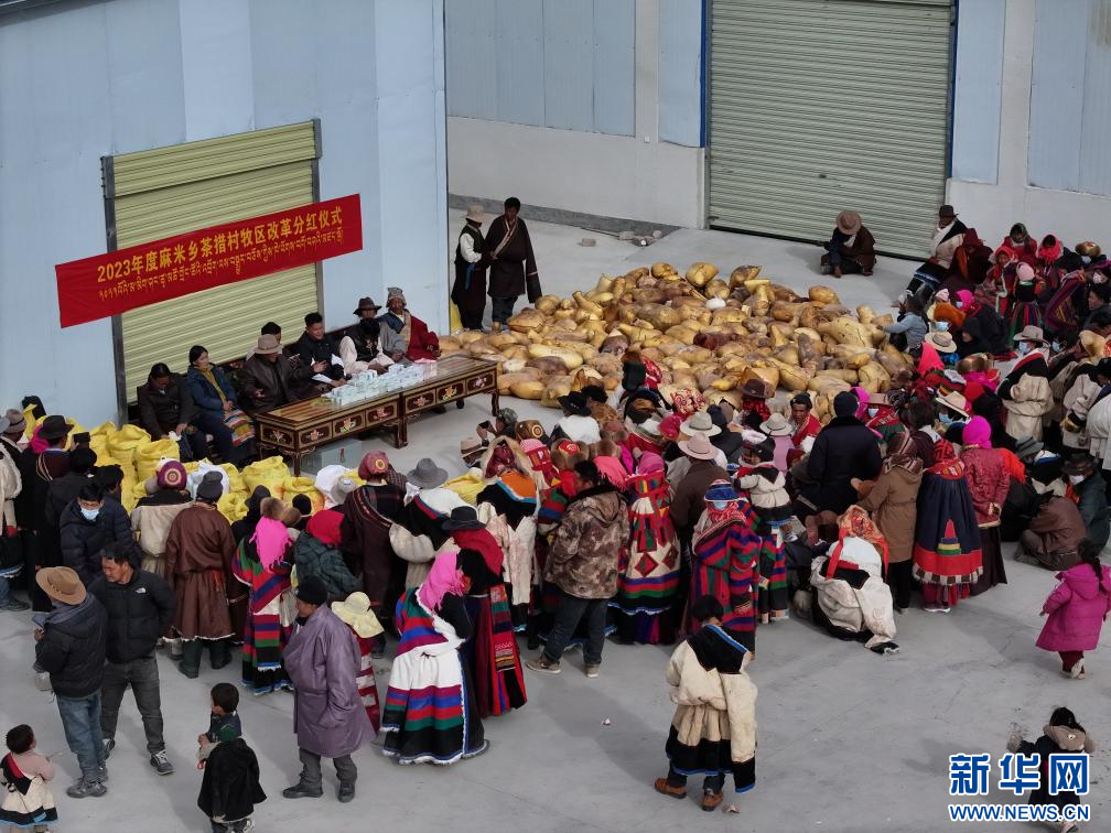 近日,西藏阿里地區改則縣麻米鄉茶措村舉行2023年度牧區改革分紅儀式。