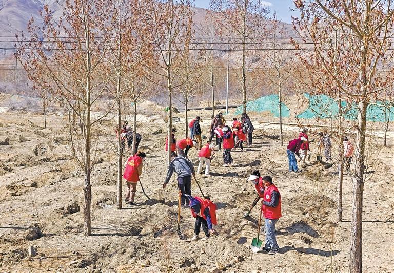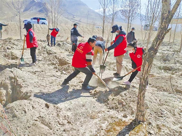 近日,日喀則市江孜縣車仁鄉組織開展“開展植樹造林、共建美麗車仁”為主題的新時代文明實踐活動,以實際行動為生態環境再添新綠。活動現場,大家分工明確、配合默契,扶苗、培土、踩實、澆水,合力栽下一棵棵樹苗。經過一番辛勤勞動,共種植樹苗700棵。