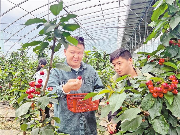 圖為群眾在基地采摘新鮮車厘子。記者 胡文 攝