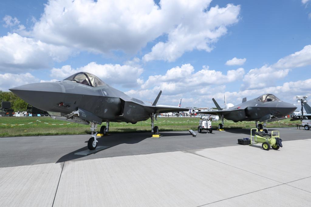 這是2018年4月27日在德國柏林國際航空航天展上拍攝的“F-35”型戰機。新華社記者單宇琦攝