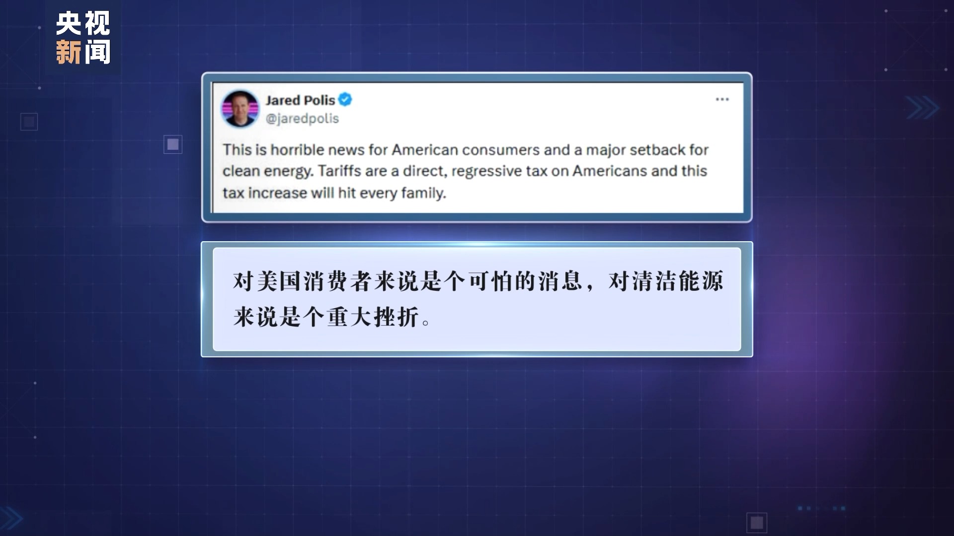 科羅拉多州民主黨籍州長賈里德·波利斯也在社交媒體平臺發帖寫道,此舉“對美國消費者來說是個可怕的消息,對清潔能源來說是個重大挫折”。