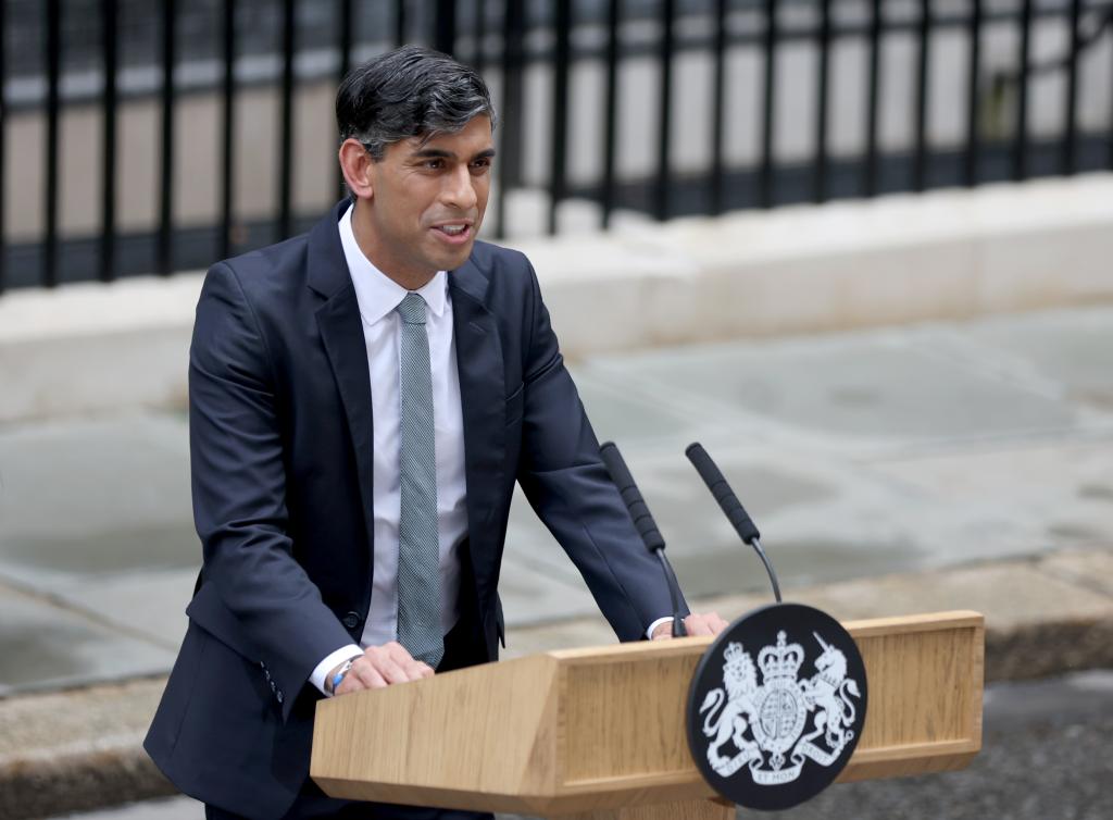 7月5日,蘇納克在英國倫敦唐寧街10號首相府前對媒體發表講話。新華社記者李穎攝