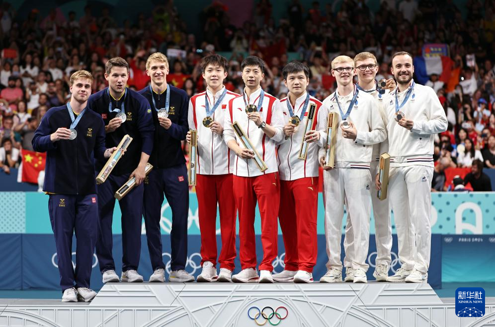 當(dāng)日,在巴黎奧運(yùn)會(huì)乒乓球男團(tuán)金牌賽中,中國隊(duì)?wèi)?zhàn)勝瑞典隊(duì),獲得冠軍。