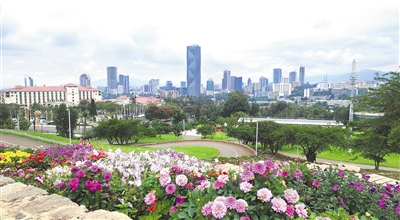 友誼廣場入口,外墻上四個遒勁有力的漢字“友誼廣場”躍入眼簾,紅底白字,分外醒目。走進其中,目光所及皆是綠色,樹木蔥蘢、青草葳蕤,頓覺神清氣爽,仿佛踏入一個天然氧吧。廣場依山而建,高處連綿起伏的琴弦狀花帶,如同一條條彩帶在空中飛舞;半山腰空曠的廣場上,可遠眺中央商務區的城市景觀;山腳的人工湖波光粼粼,倒映著藍天白云和綠樹紅花……