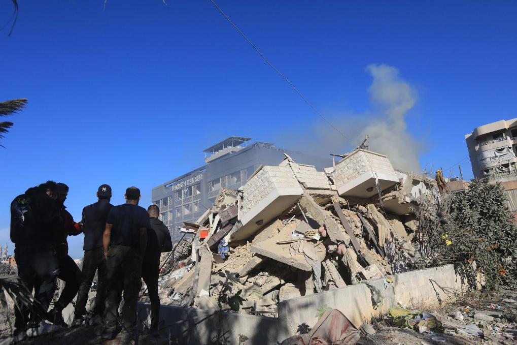 這是11月17日在黎巴嫩貝魯特南郊拍攝的遭以色列空襲的建筑。新華社發