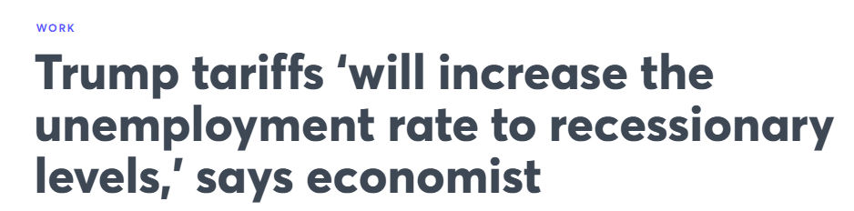 保守派智庫美國企業研究所(American Enterprise Institute)經濟政策研究主任、喬治城大學教授邁克爾·R·斯特蘭(Michael R. Strain)直言:“若(關稅)政策持續,(美國)失業率將攀升至經濟衰退的水平。”