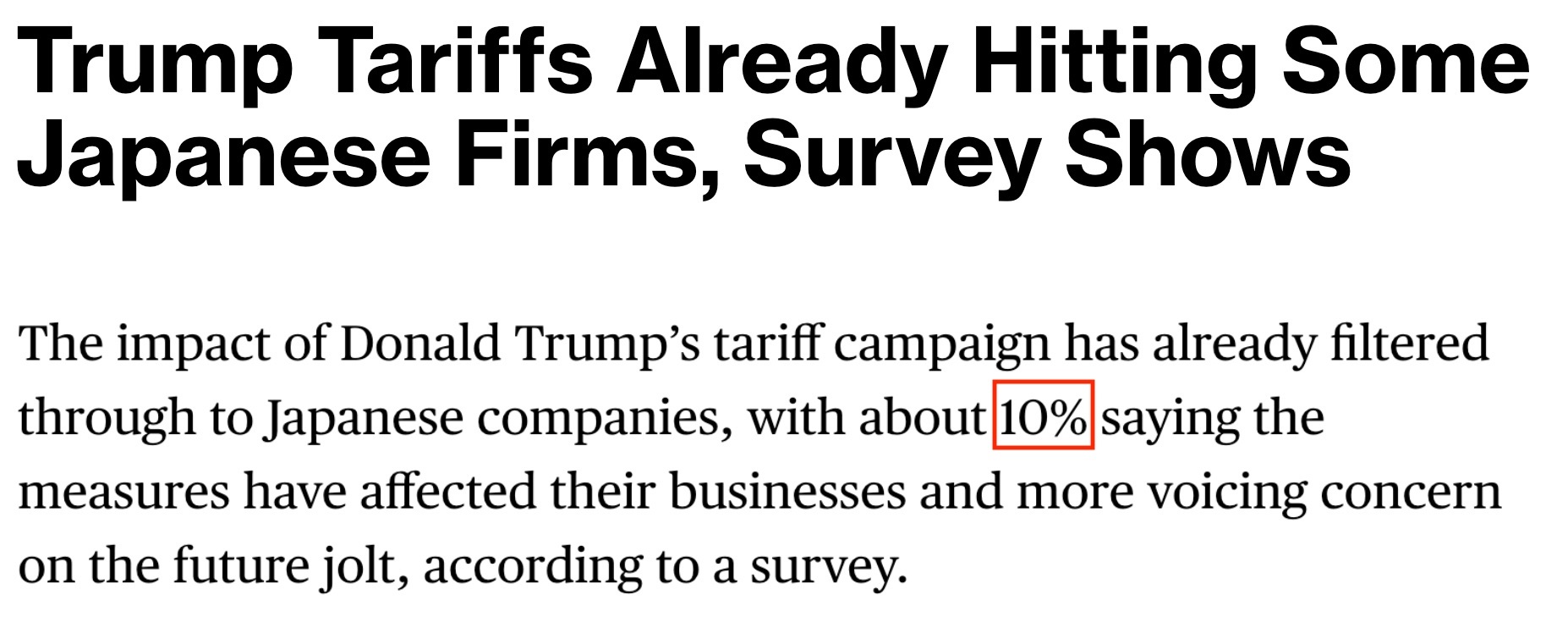 根據日本財務省22日公布的最新調查結果,約10%的日本企業表示,美國的關稅措施已經直接影響到了它們的業務;更多的企業則對未來的關稅沖擊感到恐慌。