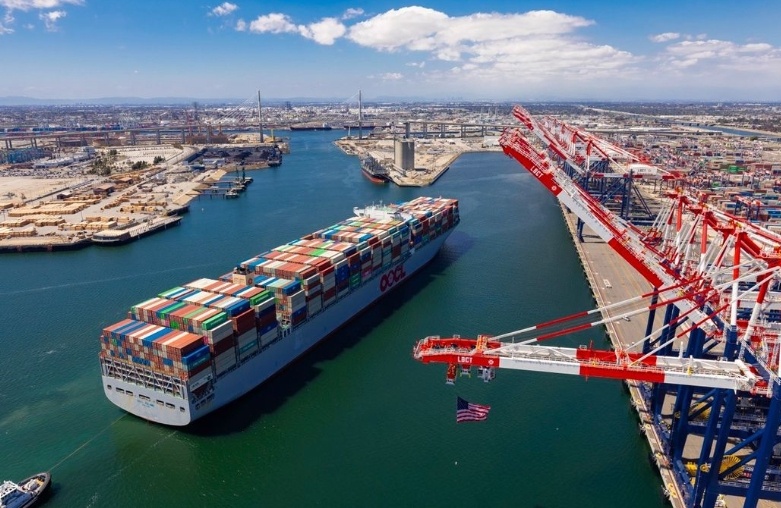 在截至4月25日的一周內(nèi),有十艘集裝箱船抵達(dá)了美國洛杉磯港和長灘港,所載貨物達(dá)55.5萬噸,這一數(shù)字與去年同期大致相當(dāng)。