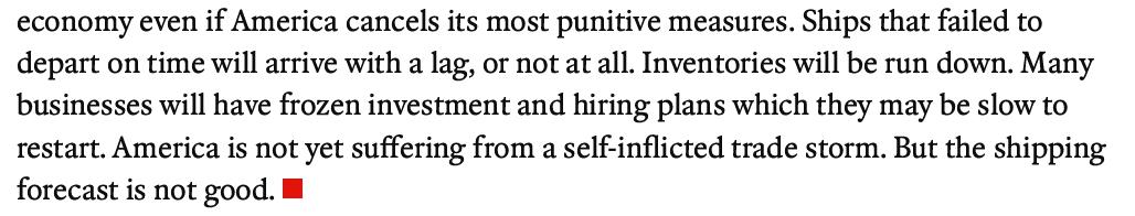 但是痛苦大概率即將到來。貿(mào)易沖擊需要一段時間在經(jīng)濟(jì)體中傳導(dǎo)。