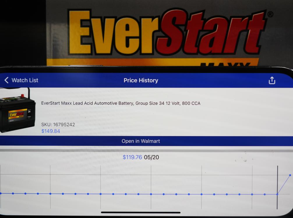 5月21日,在美國舊金山灣區圣利安卓San Leandro的一家沃爾瑪超市,價格跟蹤軟件(Walmart Tracker)顯示商品(EverStart汽車蓄電池)售價變化。新華社記者吳曉凌攝