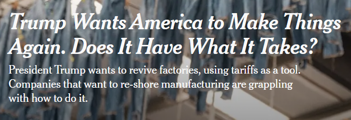 美國政府挑起了一場全球貿易戰,它賭的是對其他國家征稅將會讓就業和工廠“重回”美國。然而,《紐約時報》近日發表的一篇文章對這一策略提出了強烈質疑,并揭示了美國制造業回流面臨的巨大挑戰。